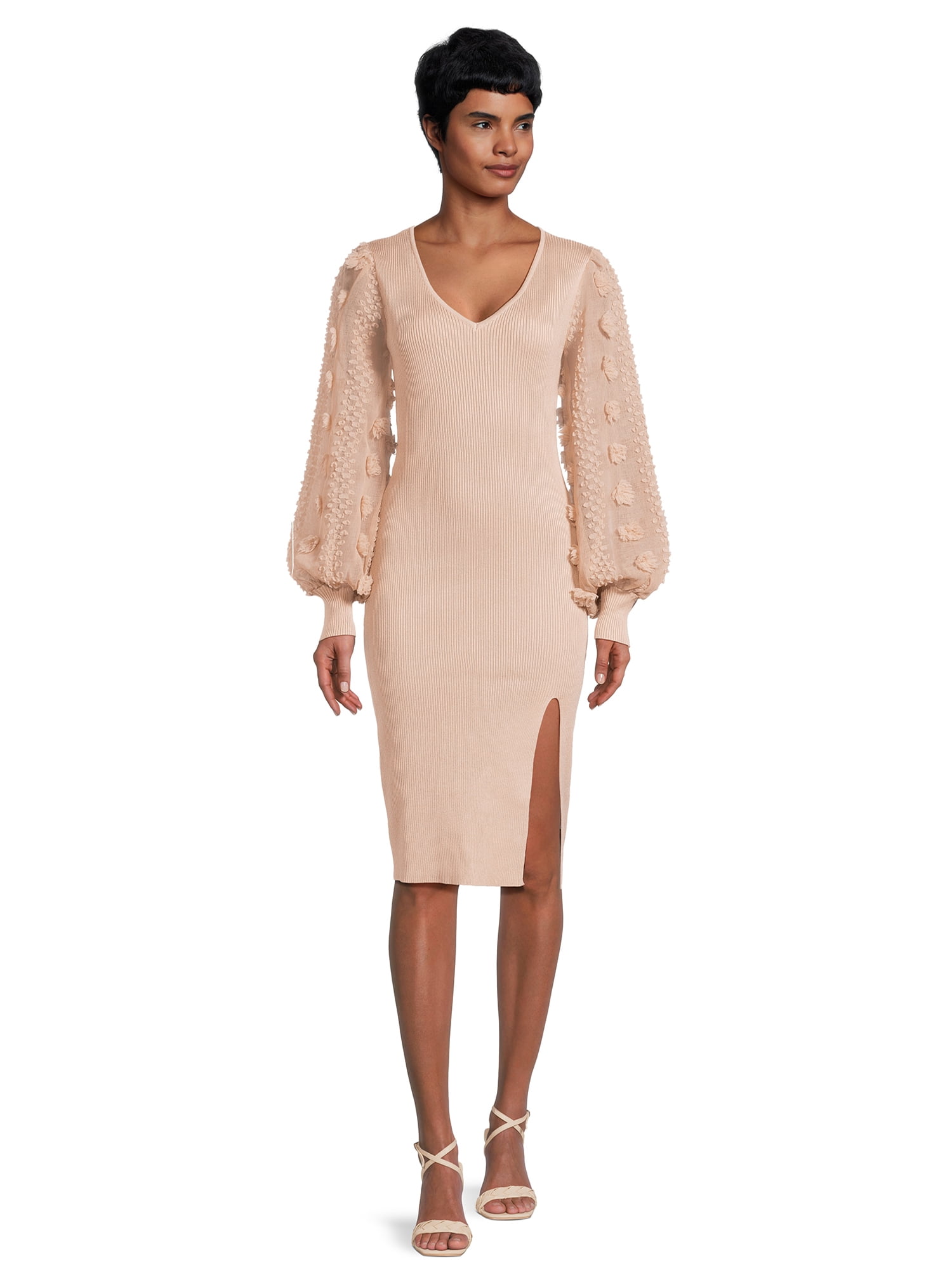 No Boundaries Juniors V Neck Midi Dress With Long Sleeves Sizes Xs 3xl Walmart Com
